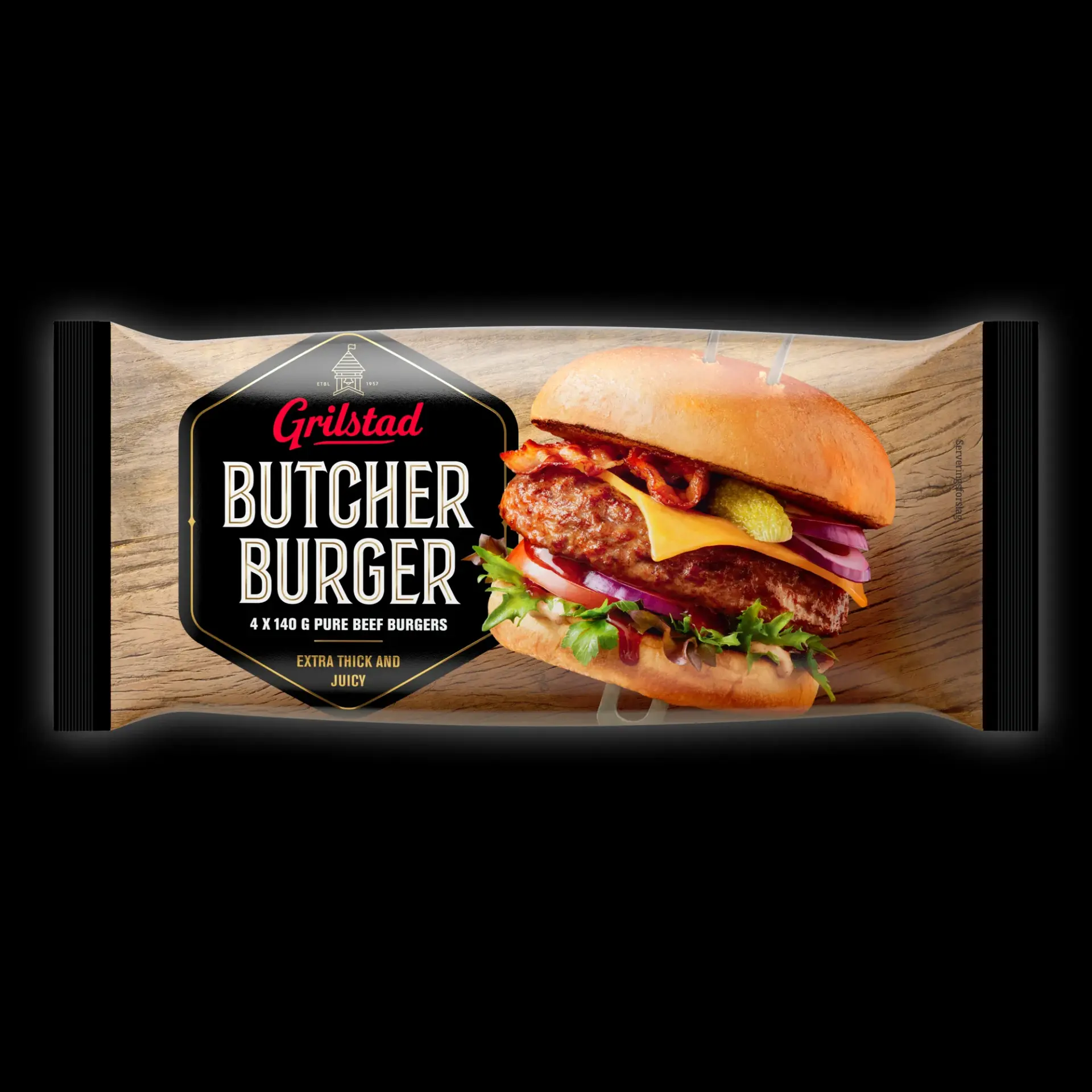 Butcher Burger er en ekstra tykk og saftig burger, som smaker skikkelig kjøtt! 🤌