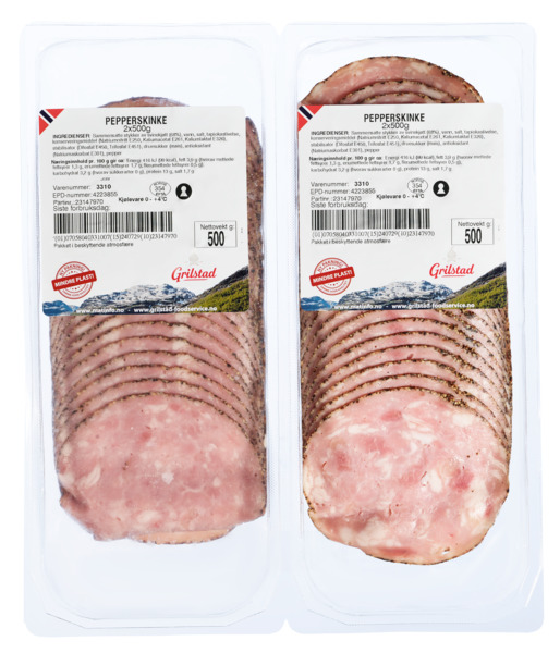 Et smakfullt, spennende og økonomisk skinkepålegg. Med tydelig pepperrand. Kommer i praktisk, taklagt forpakning tilpasset Storhusholdning.