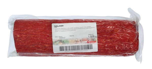 Til 100 g ferdig vare er anvendt 125 g kjøtt av svin og spekk, salt, bestrålt krydder, farge (karmin E120), startkultur, antioksidant (askorbinsyre E300, natriumaskorbat E301) og konserveringsmiddel (natriumnitritt E250).